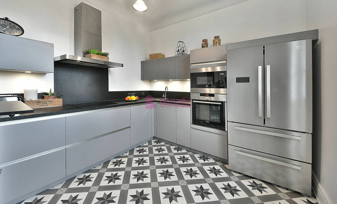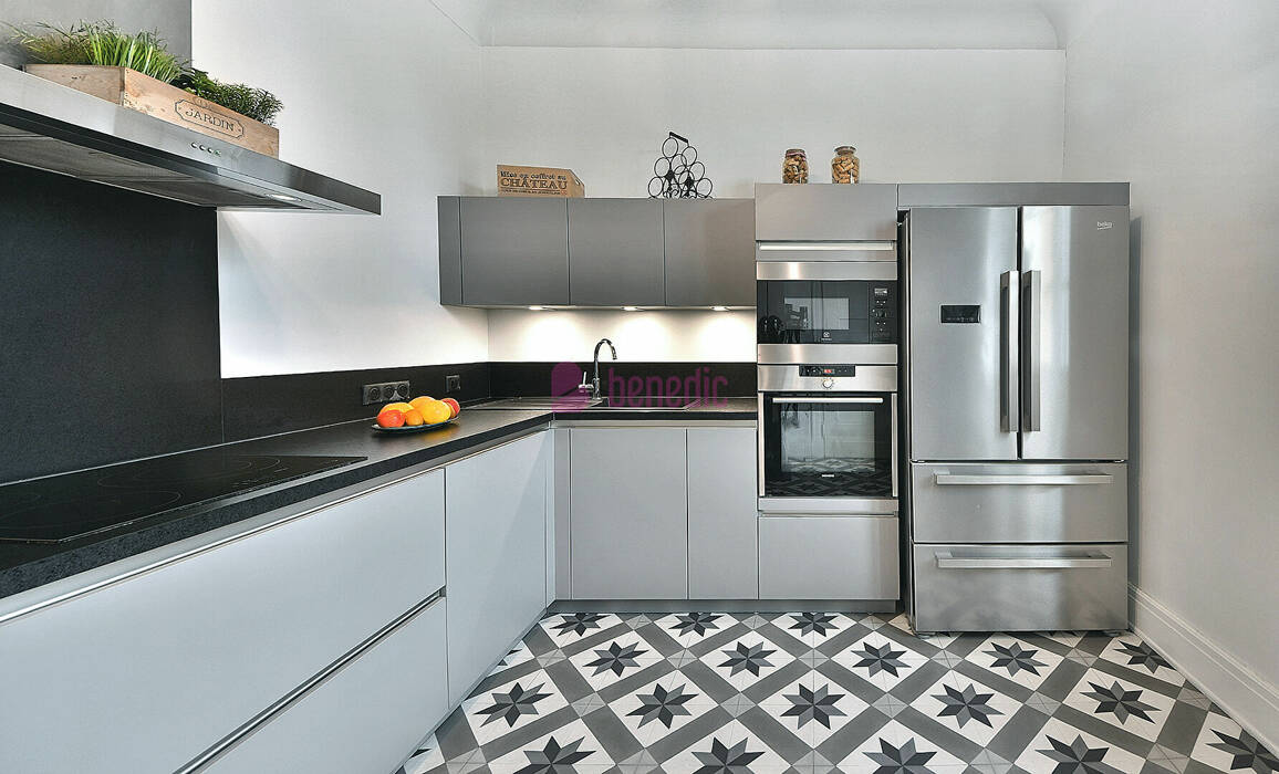L'appartement s'ouvre sur une entrée avec rangements intégrés, desservant deux belles chambres aux volumes généreux. Vous apprécierez également sa salle de bains moderne avec WC, ainsi qu'une cuisine élégante, aménagée et fonctionnelle.