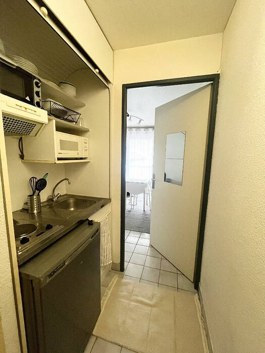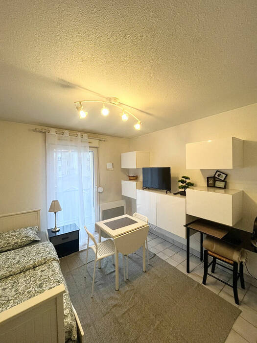 Le cabinet BENEDIC vous propose ce studio meublé, aménagé et comprenant : une entrée kitchenette (plaques électrique, micro-onde, réfrigérateur, hotte), Une salle de bain avec WC, et une pièce de vie entièrement meublée avec accès à un petit balcon.