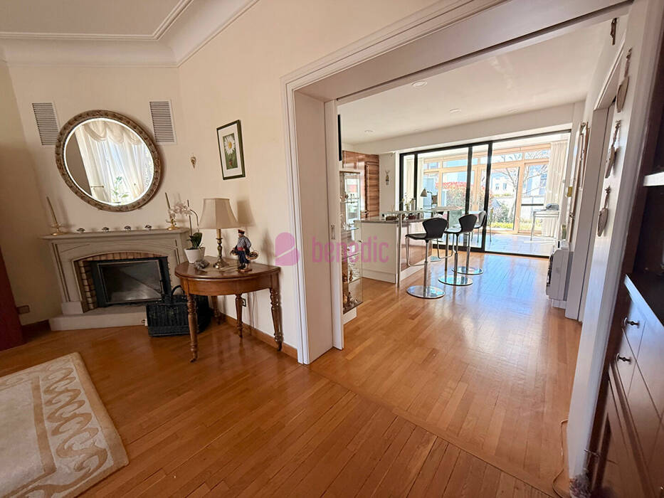 Au rez-de-chaussée, dès l'entrée vous découvrirez un magnifique hall sublimé par un escalier et des boiseries sur mesure réalisés par un artisan, un séjour et un salon comportant un bow-window, le salon est ouvert sur une cuisine récente et spacieuse avec accès direct à une belle véranda, s'ouvrant sur une terrasse et un jardin.