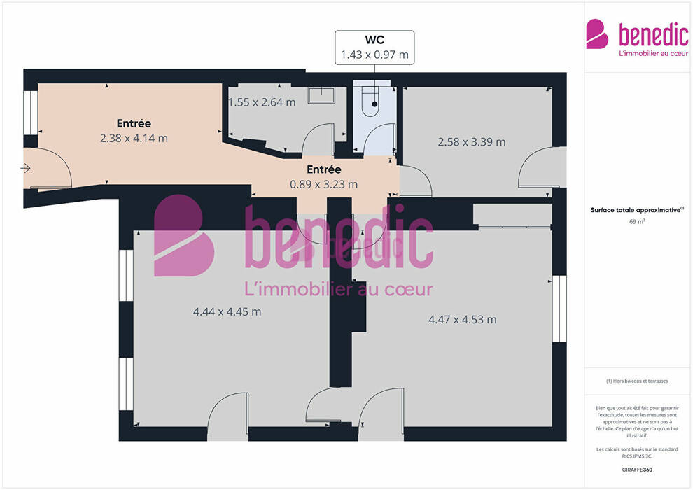 Surface totale: 68 m²