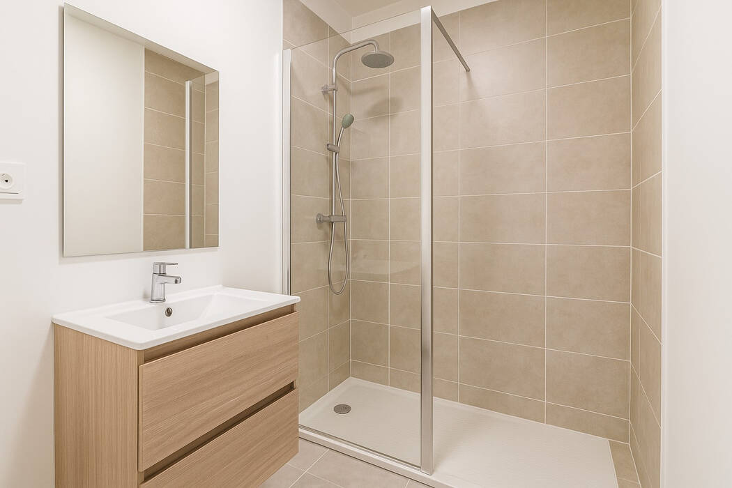 Les studios offrent un espace optimisé où la pièce de vie permet aisément de créer un coin nuit et un espace séjour, complétés par une kitchenette aménagée et une salle d'eau contemporaine.