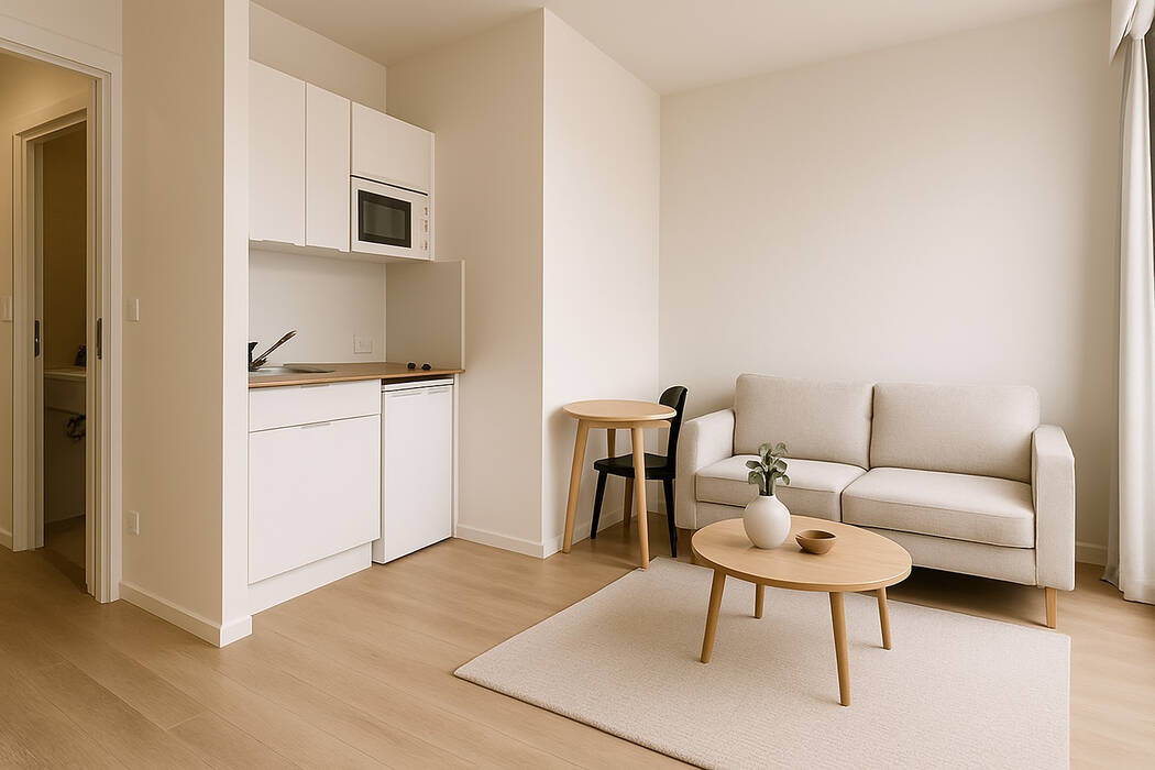 Les studios offrent un espace optimisé où la pièce de vie permet aisément de créer un coin nuit et un espace séjour, complétés par une kitchenette aménagée et une salle d'eau contemporaine.