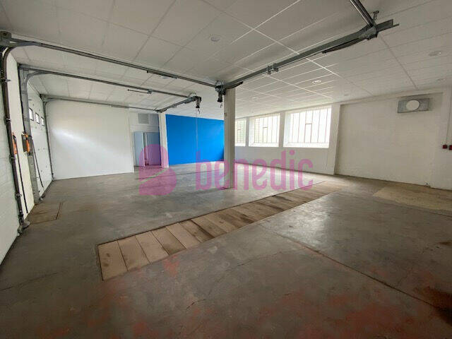 Au RDC, vous trouverez des locaux professionels et commerciaux ( ancien occupant garage auto ) comprenant une entrée, une surface d'accueil client avec vitrine (5 mètres linéaires), un bureau, une pièce sanitaire (54 m² pour l'ensemble), un grand hall d'activité de 122 m² avec 2 portes sectionnelles (3 mètres de hauteur pour 3.46 mètres de passage) et avec pièces d'eau également.