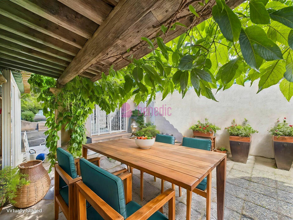 Benedic Immobilier vous propose cette propriété polyvalente située en zone agricole, à seulement 900 mètres de la plage, et en plein coeur de Fréjus, à l'écart de l'agitation, au fond d'une allée privée.