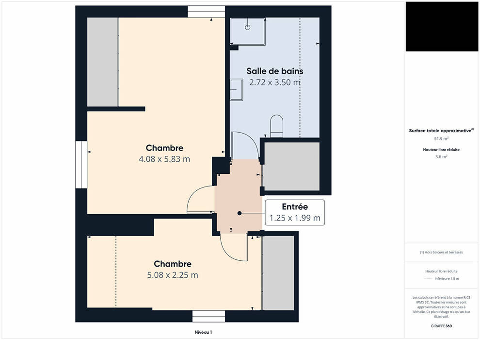 Chambre 1: 20 m²