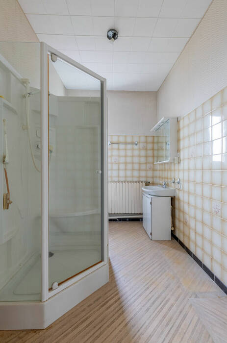 Au 1er étage : 2 chambres à personnaliser, salle de douche avec sanibroyeur.