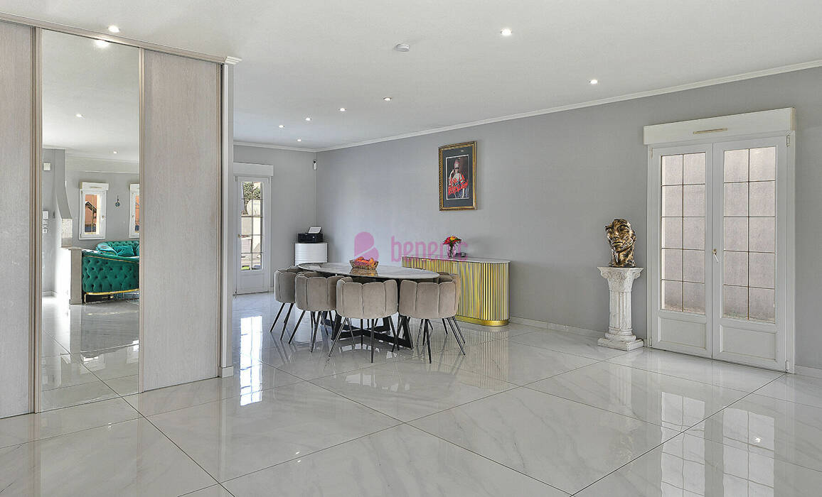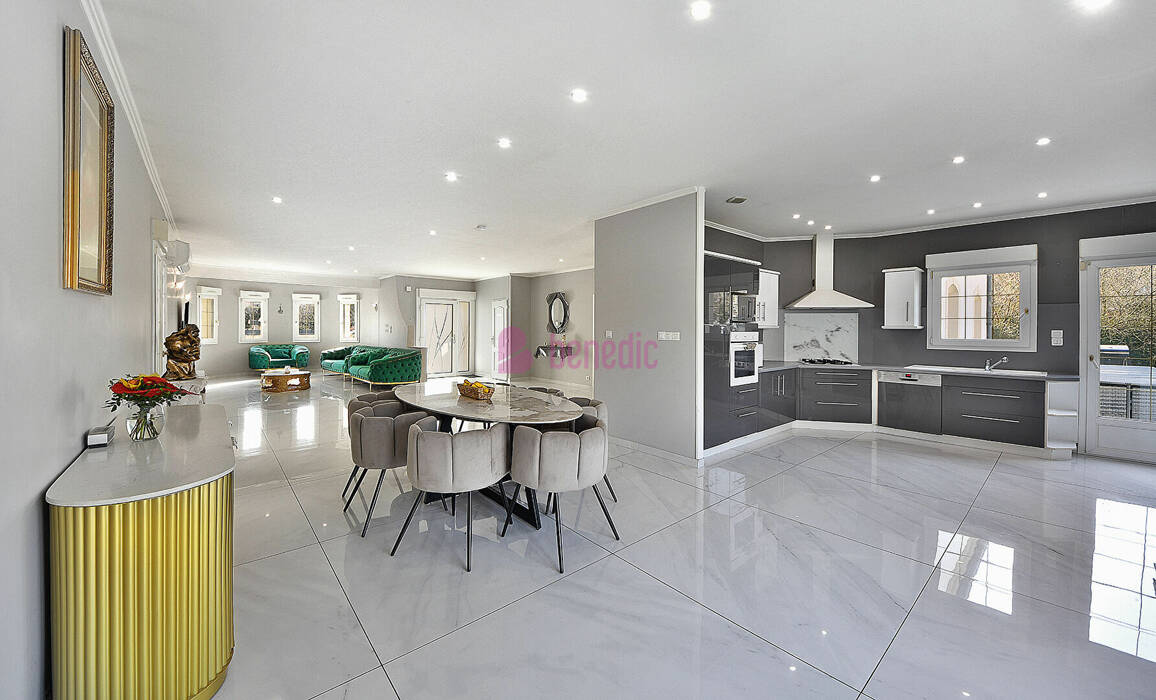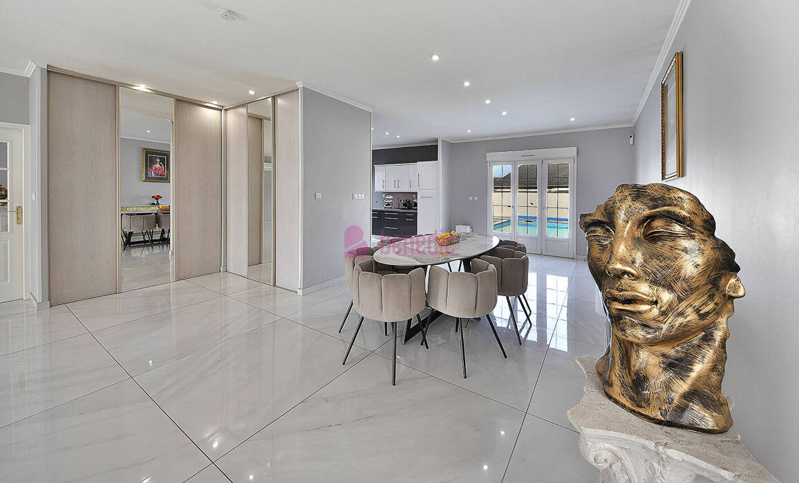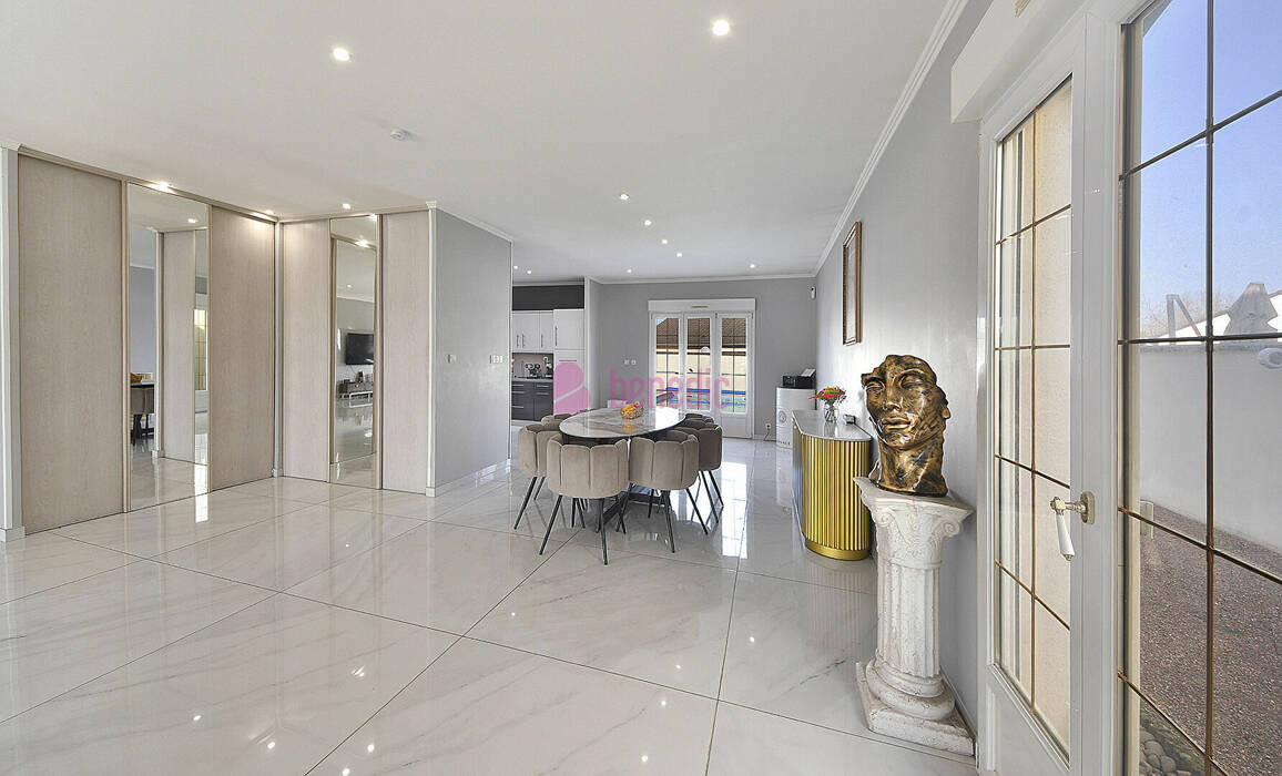 L'accueil de la maison se fait par une entrée spacieuse de 17 m² avec dressing, ouverte sur un séjour de 55 m², lumineux et convivial, lui-même connecté à une cuisine de 15 m². Trois accès permettent un passage direct vers le jardin, offrant une belle fluidité entre intérieur et extérieur.
