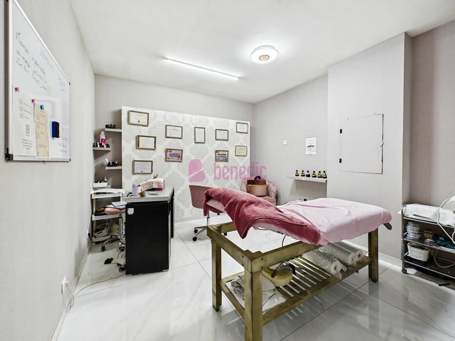 La maison dispose de trois chambres de 11,55 m², 13,28 m² et 14,34 m², d'une buanderie/chaufferie, et d'un ancien garage transformé en salon d'esthétique de 14 m². Un second garage reste disponible.