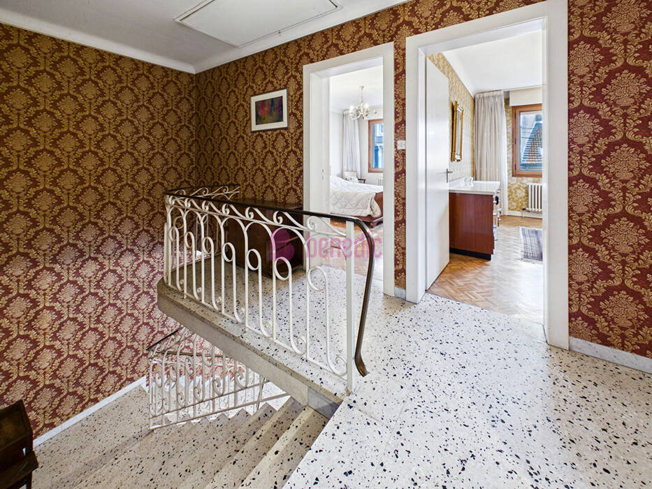 Elle dispose de beaux volumes et aux multiples possibilités. Composée au rez-de-chaussée d'une vaste entrée, d'une chaufferie et d'une cave donnants accès à deux garages offrant un vaste espace de stockage ou de stationnement.