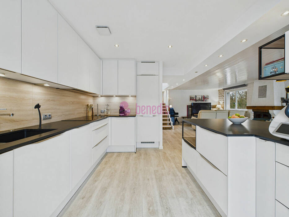 Dès l'entrée, le ton est donné : la pièce de vie de 51 m² séduit par sa luminosité et son atmosphère conviviale. Cuisine ouverte, salon avec cheminée, espace bureau? tout s'articule harmonieusement pour créer un lieu de partage. Depuis le salon, la terrasse prolonge naturellement cet espace vers un jardin verdoyant, idéal pour profiter des beaux jours.