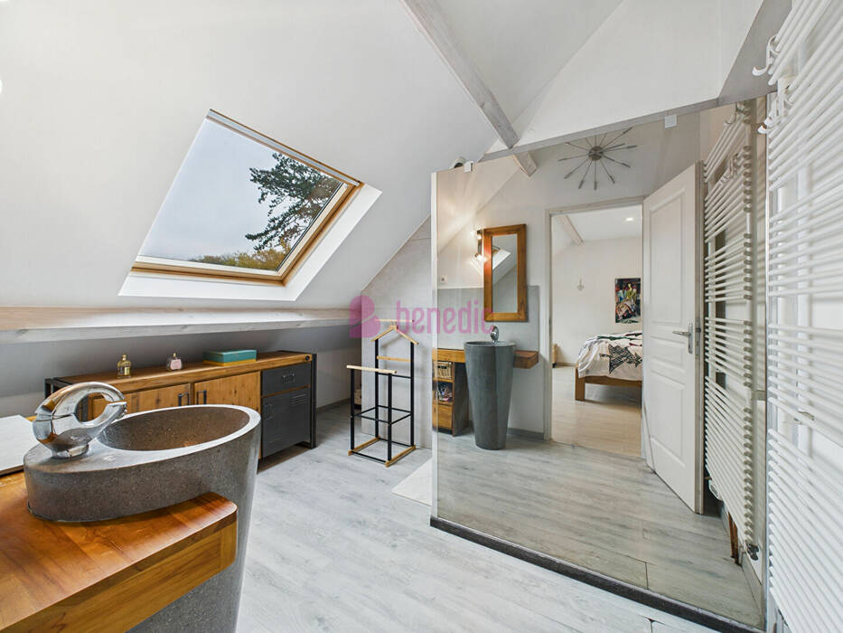 La maison propose quatre chambres confortables ainsi qu'une salle de bains. Véritable coup de coeur, la suite parentale de 71 m² offre un espace intime et raffiné : salon privé, chambre spacieuse, dressing et salle d'eau? un véritable refuge au sein de la maison.