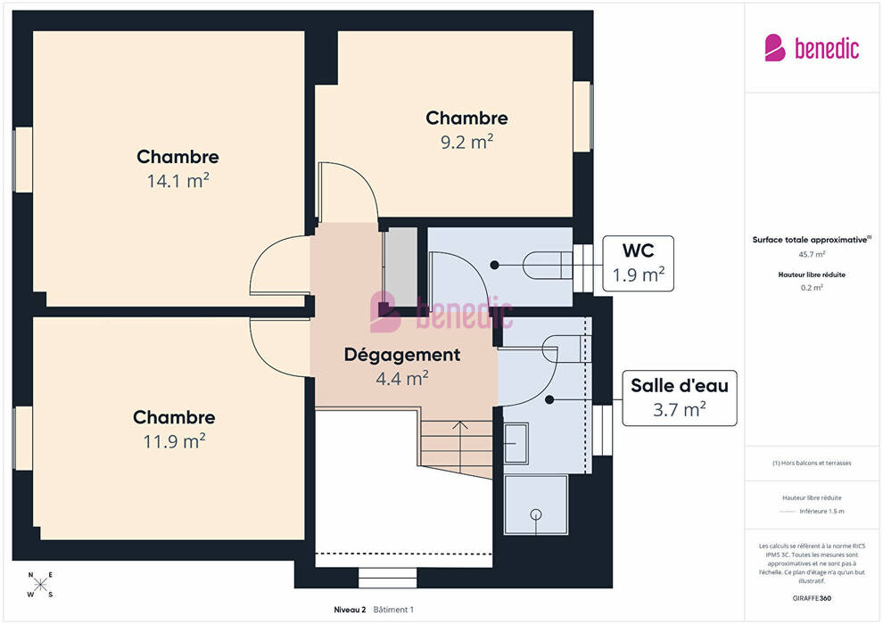 Au deuxième étage, vous découvrirez trois chambres supplémentaires, une salle d'eau et un toilette, permettant de créer facilement un espace distinct pour les enfants et les parents.