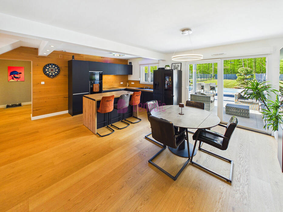 Implantée en lisière de forêt, cette propriété offre un cadre de vie privilégié. Vous pourrez pleinement profiter de ses extérieurs aménagés, comprenant un jardin, une piscine et un spa, propices à la détente. La terrasse agrémentée d'une pergola constitue un espace idéal pour recevoir, dans une atmosphère conviviale aux airs de vacances.