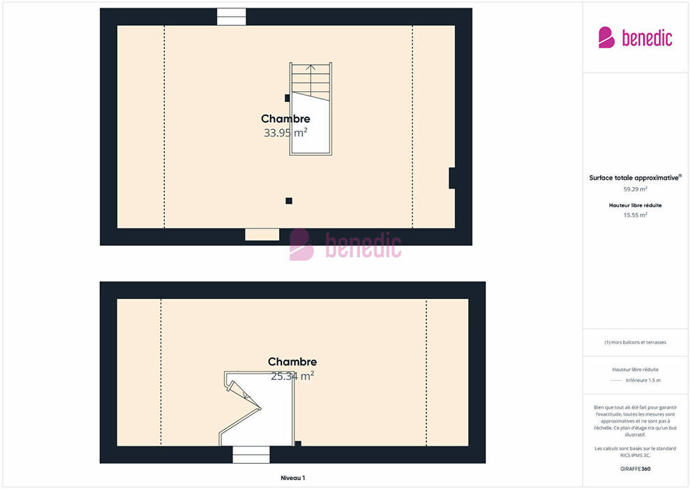 - 2 grandes chambres (10,77 m² et 14,40 m²)
