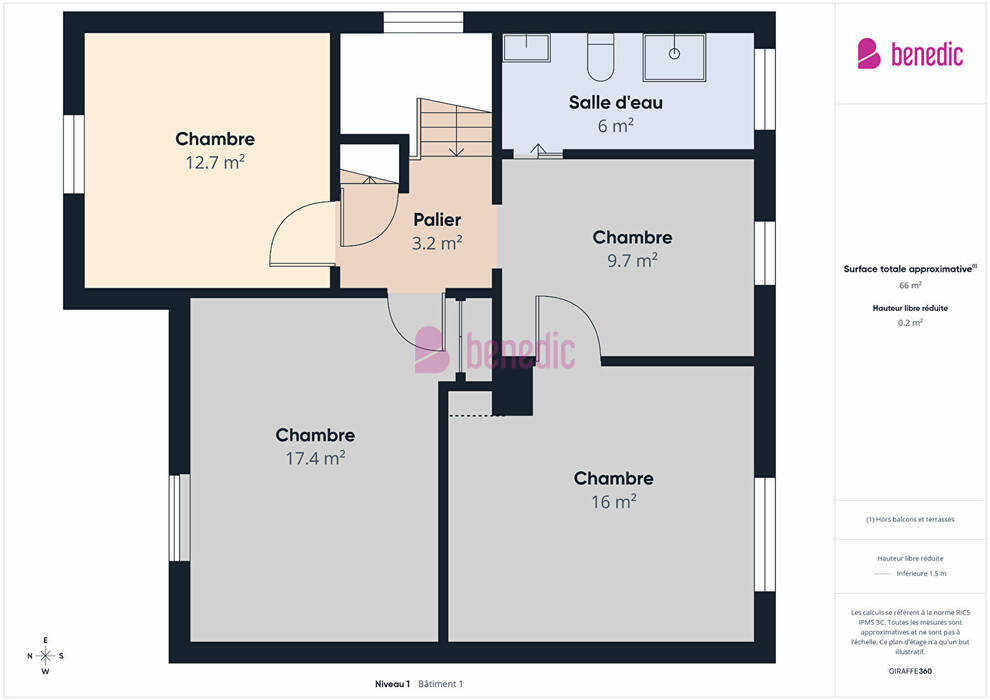A l'étage : trois chambres, un dressing, une salle d'eau.