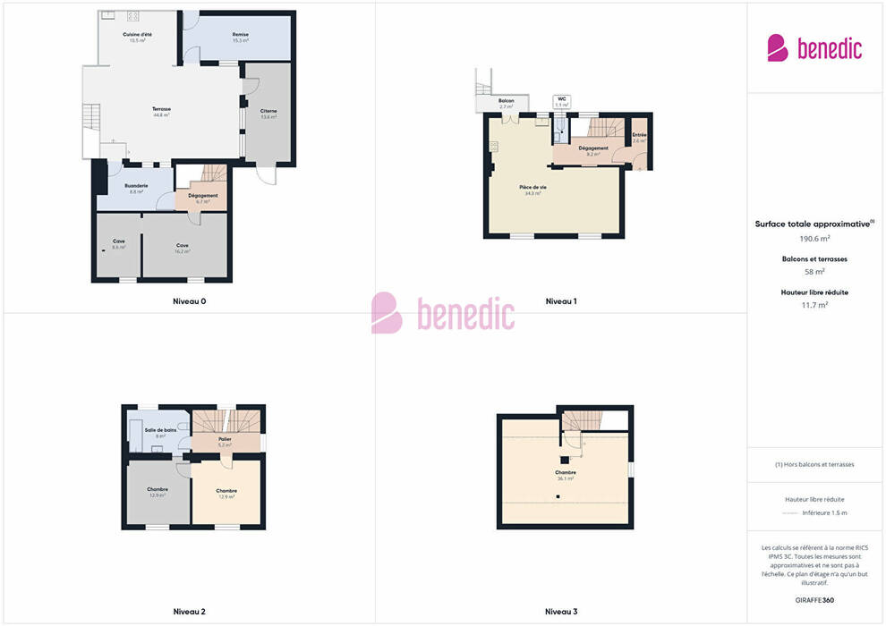 * Au rez-de-chaussée : entrée, cuisine équipée ouverte sur séjour, wc