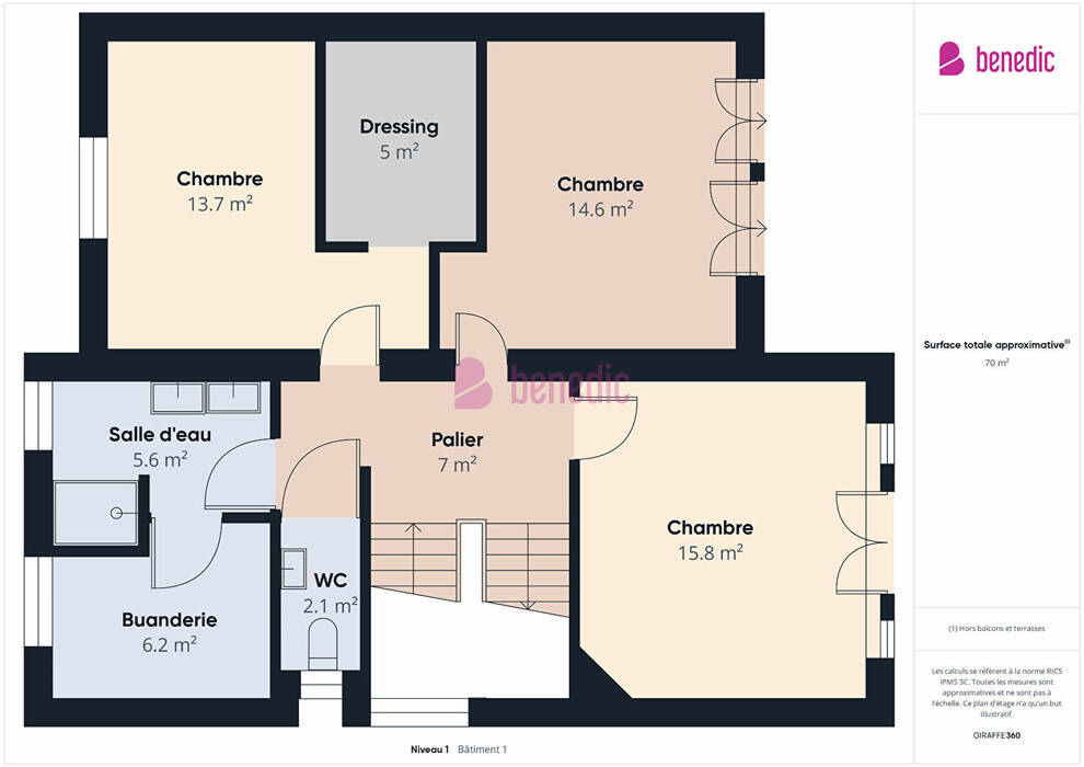 5 chambres, 1 salle de bains + 1 salle d'eau, 3 WC