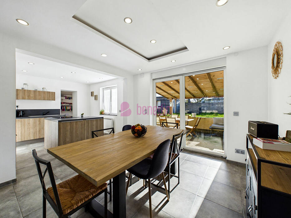 Le coeur de la maison bat dans une belle pièce de vie de 32m² avec cuisine ouverte entièrement équipée, parfaite pour cuisiner en discutant, recevoir, ou simplement profiter du quotidien sans cloison. Et bien sûr, tout ça s'ouvre directement sur la terrasse et le jardin, avec en bonus une terrasse couverte pour les cafés même quand le ciel hésite.