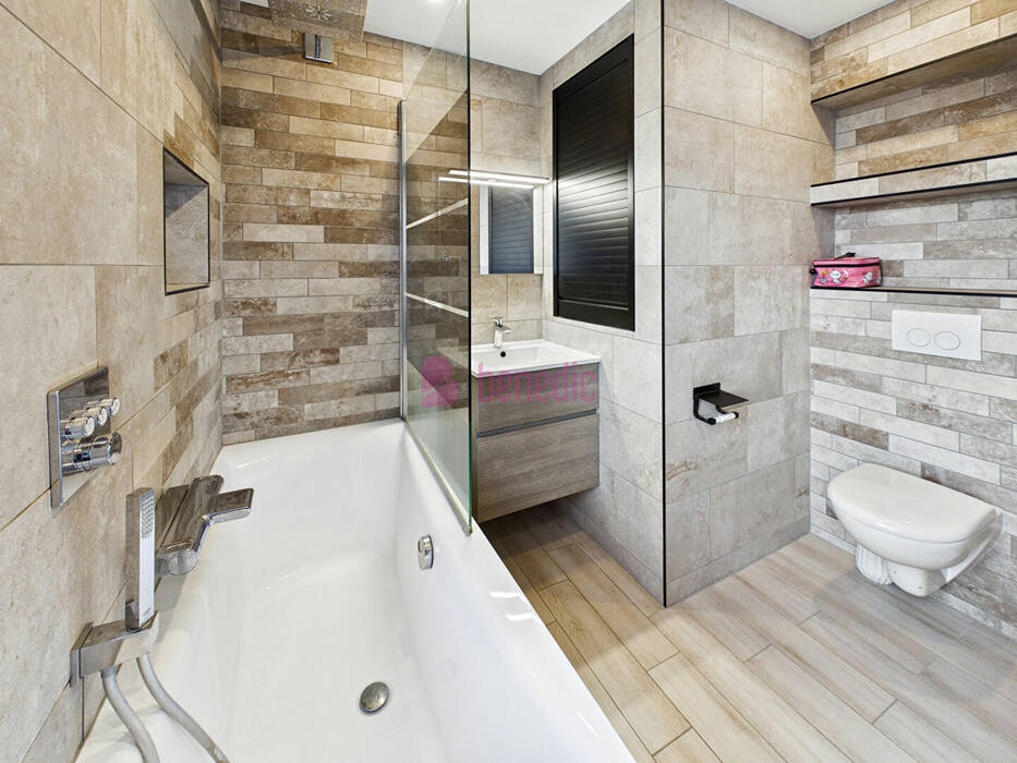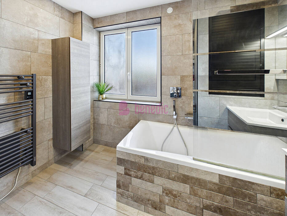 Une salle de bains avec baignoire et toilette complètent ce niveau.