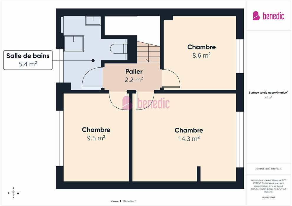Chambre 1: 14 m²