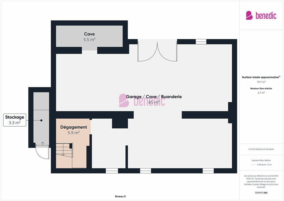 En rez-de-sol : un espace buanderie et un garage ouvert sur caves. Un jardin.