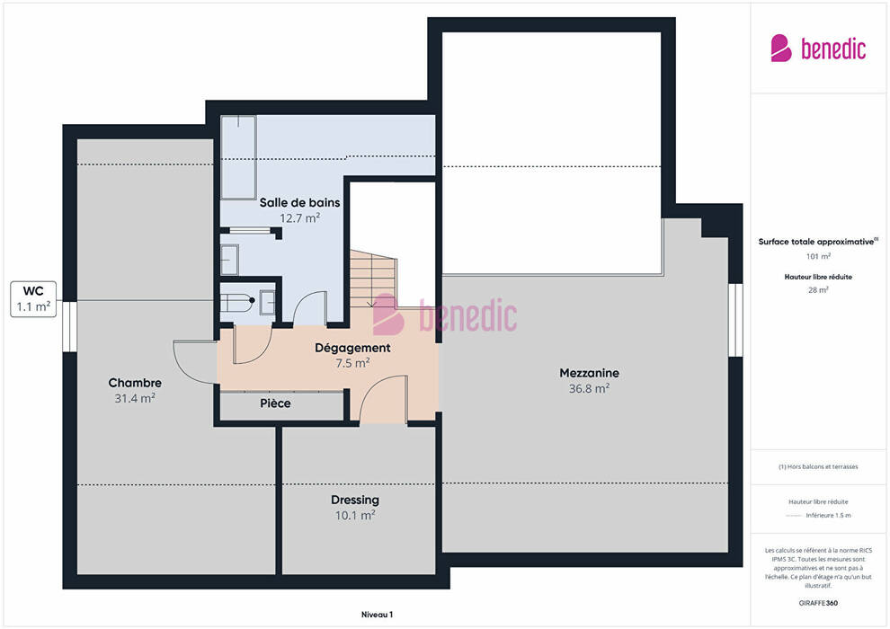 - A l'étage, un espace mezzanine, une chambre, un dressing, une seconde salle de bains, un WC.
