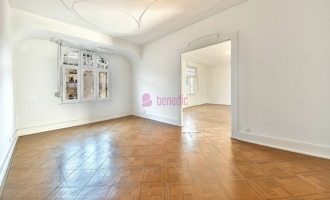 C'est au 3e étage avec ascenseur que vous le découvrirez. Il offre un triple espace de réception de 90m2. Idéalement orienté, les hauts plafonds, moulures et autres parquets n'en sont que sublimés !