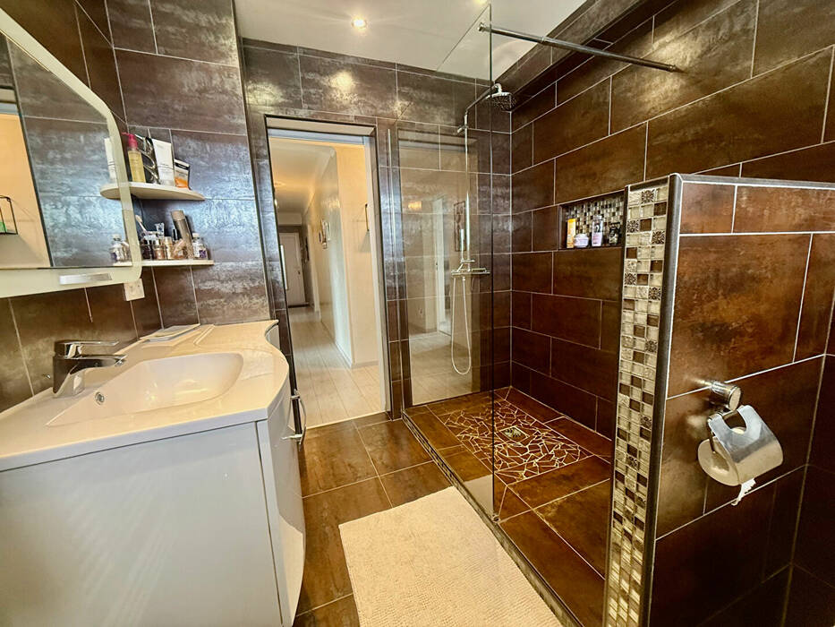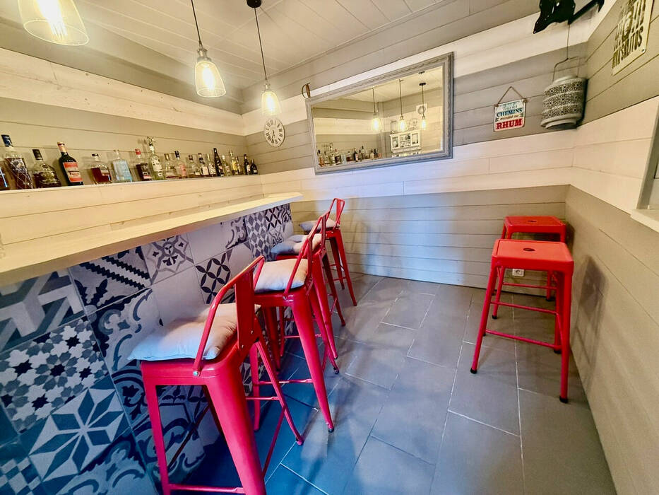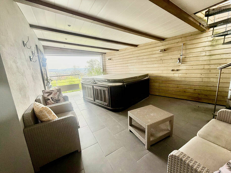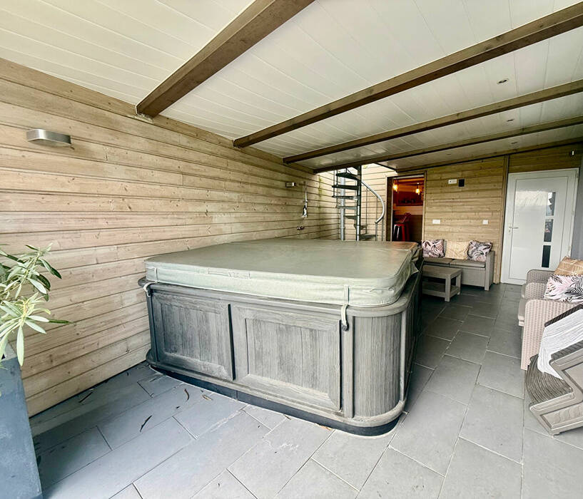 Elle dispose également d'un balcon, de deux terrasses, dont une couverte aménagée avec un SPA et une pièce bar, d'une dépendance et d'un garage double.