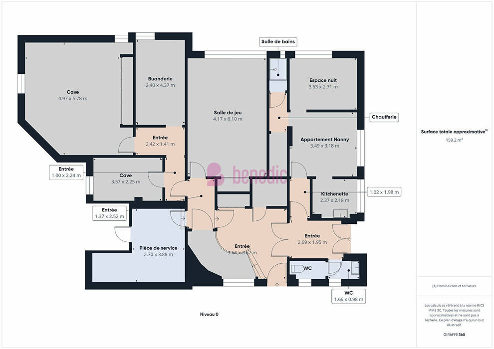 Un appartement dédié à la nanny, diverses caves et grenier complètent la demeure principale.