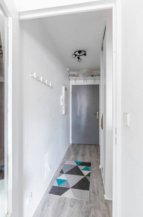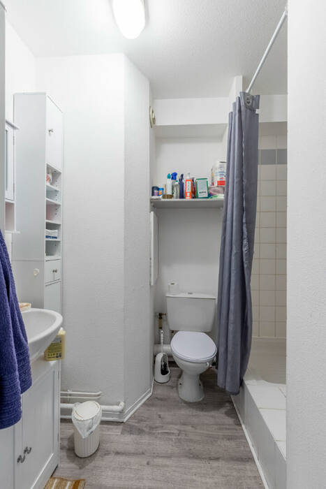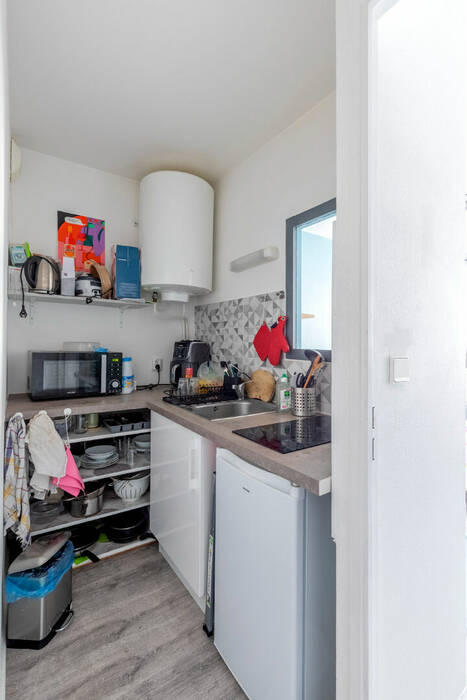 Le logement se compose d'une entrée avec placard, d'une pièce de vie lumineuse avec espace nuit et bureau, d'un coin cuisine équipé, ainsi que d'une salle d'eau avec WC.