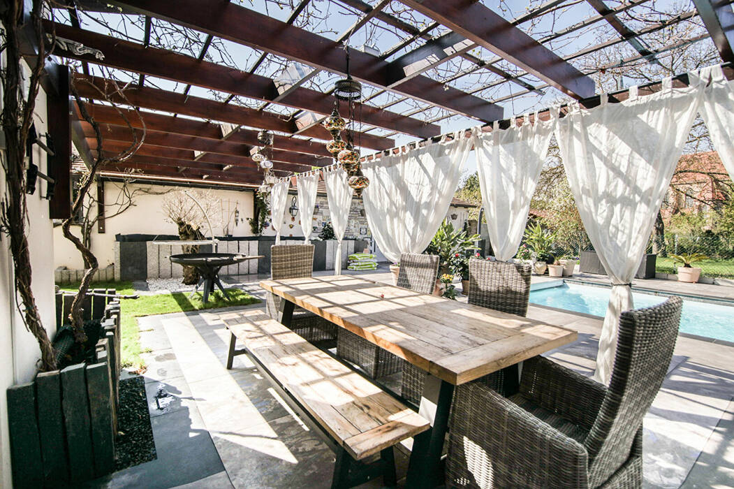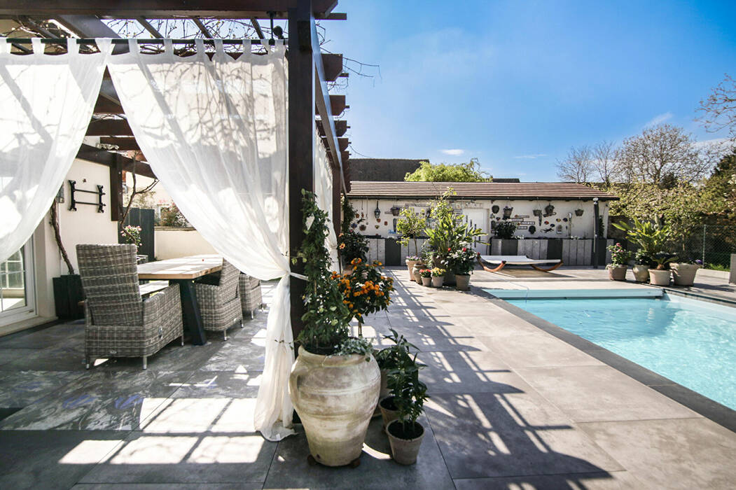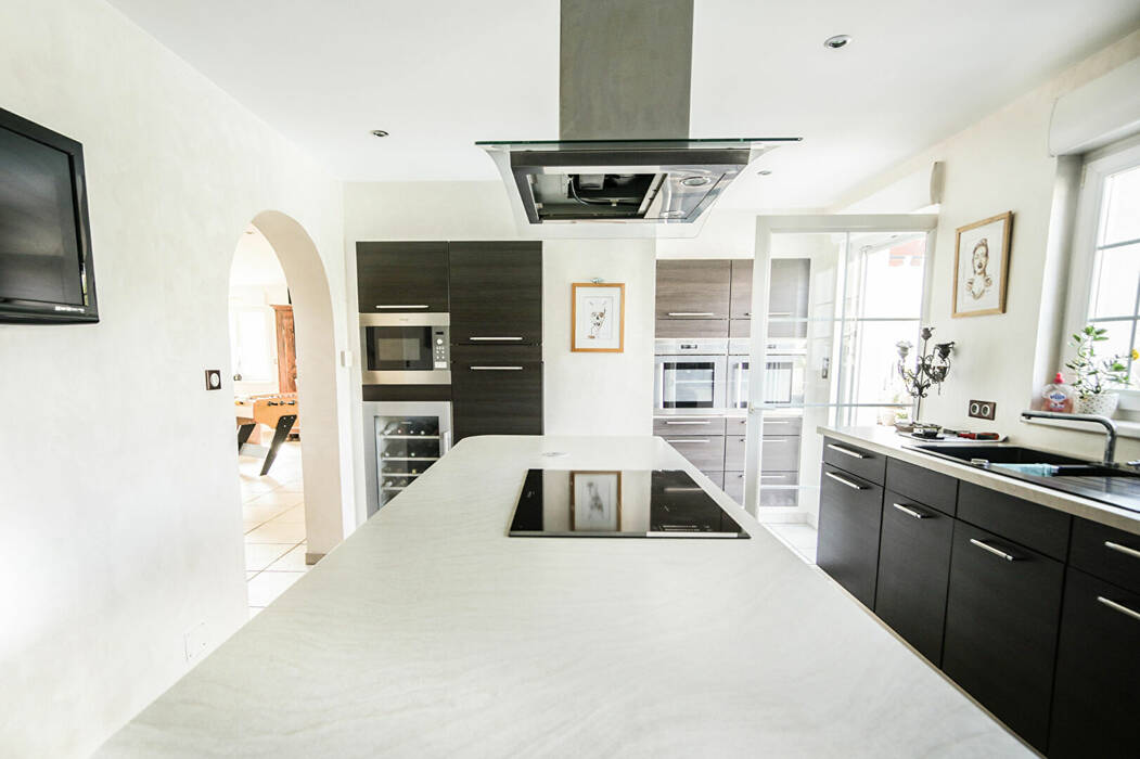 Dès l'entrée, vous serez séduit par une belle pièce de vie d'environ 60 m² baignée de lumière naturelle grâce à ses grandes baies vitrées ouvrant sur une vaste terrasse et un jardin paysagé avec une grande piscine sans vis-à-vis. La cuisine ouverte, entièrement équipée, séduira les amateurs de gastronomie par sa fonctionnalité et ses équipements haut de gamme, dont un îlot central, une cave à vin, deux fours, un micro-onde intégré, une plaque à induction, une hotte et un lave-vaisselle à mi-hauteur.